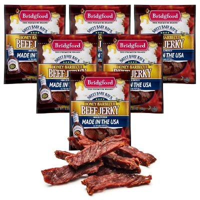Bridgford Sweet Baby Ray’s Beef Jerky Honey BBQ 3.25 Oz – Ready-to-Eat High Protein Jerky For Midday Energy Boost Or A Post Workout Snack