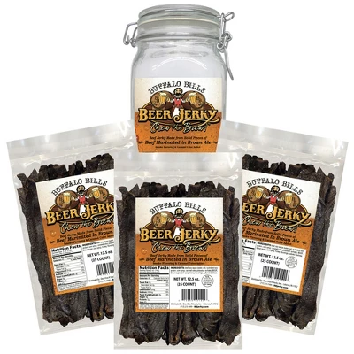 - Includes 3 bags of Buffalo Bills Premium Honey Ale Beer Beef Jerky