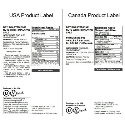 We take pride in delivering high-quality, carefully sourced pine nuts that undergo strict quality control. Our roasting process ensures maximum flavor and crunch, while Himalayan salt enhances the natural taste. Whether you’re looking for a nutritious snack, a gourmet ingredient, or a health-conscious addition to your diet, our Dry Roasted Pine Nuts with Himalayan Salt are the perfect choice.Warning: Consuming this product can expose you to chemicals including Acrylamide, which is known to the State of California to cause cancer and birth defects or other reproductive harm. For more information go to www.P65Warnings.ca.gov/food