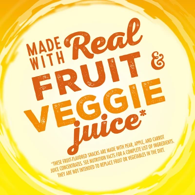 - MADE WITH REAL FRUIT AND VEGGIE JUICE: These fruit flavored snacks are made with pear, apple, and carrot juice concentrates; See nutrition panel on box for complete list of ingredients; They are not intended to replace fruit or vegetables in the diet