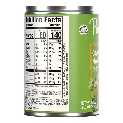 Immerse your taste buds into Pacific Foods Organic Chicken Noodle Soup. This organic soup has tender organic chicken, chicken broth, hearty egg noodles and garden vegetables. Enjoy it on its own as a quick and easy snack, customize it with your favorite toppings or pair soups with a salad, sandwich or wrap. USDA Certified Organic and made with non-GMO ingredients, this organic chicken soup contains 13 grams of protein per can and is made with no MSG, high fructose corn syrup, artificial colors or artificial flavors.