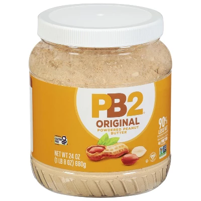 Our PB2 Powdered Peanut Butter 24oz is peanut butter re-imagined. Freshly roasted peanuts are pressed to remove most of the oil. Add a little sugar and a dash of salt and the result is peanut butter with only 1.5 g of fat per serving – almost 70% fewer calories than traditional peanut butter and 6 grams of plant-based protein. Because of its powdered form, it is easy to incorporate PB2 Original Powdered Peanut Butter into all your favorite peanut butter recipes!
