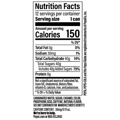 Pepsi Cola Soda Pop is the bold, refreshing cola born in New Bern, NC in 1898 and still bottled in the USA. Pepsi Cola Soda Pop is the official soft drink of the National Football League, Major League Baseball, and cola lovers everywhere. Perfect for parties, meals, and celebrations big and small