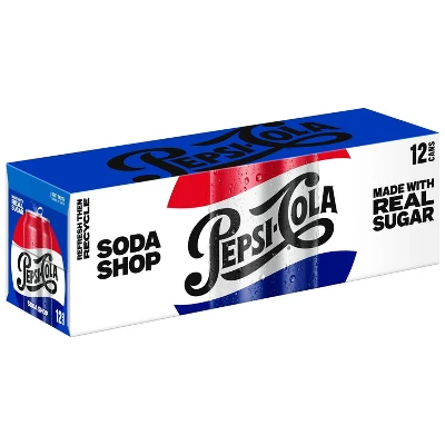 - Includes 12 CT (12 fl oz) cans of Pepsi Real Sugar Cola Soda Pop, Packaging May Vary