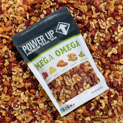 Ideal for enjoying as a protein trail mix or breakfast trail mix, our omega-3-rich trail mix is a great addition to any diet. Power Up Trail Mix is made with wholesome ingredients and no artificial preservatives, ensuring a clean and natural taste in every bite. Enjoy the perfect balance of crunchy, chewy, and sweet flavors with Power Up Mega Omega Trail Mix, the ultimate healthy snack for any lifestyle!