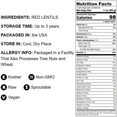 Whole red lentils contain light carbohydrates. They not only increase blood sugar levels but are also well absorbed by the body. Whole red lentils are an excellent substitute for bakery products and many kinds of groats for diabetics.WARNING: Consuming this product can expose you to chemicals including Lead, which is known to the State of California to cause cancer and birth defects or other reproductive harm. For more information go to www.P65Warnings.ca.gov/food