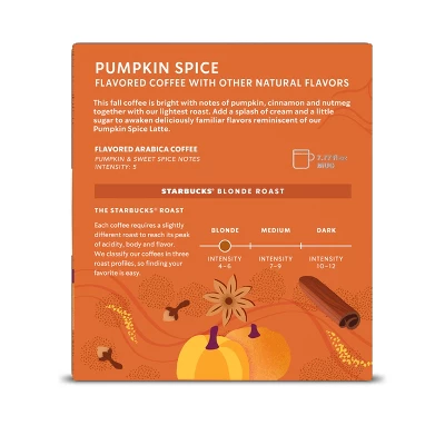 Starbucks has the perfect fall flavors you love at home on Nespresso Vertuo machines. Explore our seasonal offerings with this limited-edition Starbucks Pumpkin Spice Flavored Coffee. This fall seasonal features is naturally flavored with other natural flavors and features classic notes of pumpkin, cinnamon and nutmeg that come to life in this cozy fall favorite. Starbucks Pumpkin Spice Flavored Coffee. Whether you like black coffee or adding a flavorful coffee creamer or coffee syrup, you can elevate your cup with the fall flavors you love. Hurry, this limited-edition coffee will be gone before you know it. Nestlé uses Starbucks trademarks under license. © 2025 Starbucks Coffee Company. NESPRESSO and VERTUO are registered trademarks of Société des Produits Nestlé S.A., Vevey, Switzerland and used with permission. NET WT 3.52 OZ (100 g)