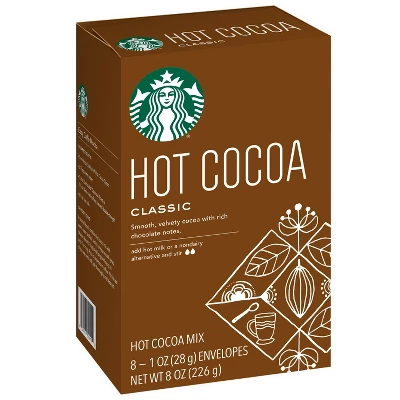 Our Starbucks Classic Hot Cocoa offers smooth, velvety cocoa flavor with rich chocolate notes. This premium hot cocoa mix is made with 3 simple ingredients – sustainably sourced cocoa powder, cane sugar, and natural vanilla flavor.