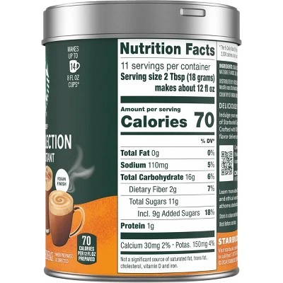 Indulge your senses with an instant uplift from Starbucks Crema Collection Premium Instant. Crafted with the same high-quality 100% arabica beans we brew in our cafés, Salted Caramel delivers a smooth and buttery taste experience in an instant. Customize your cup just the way you like it—hot or iced, and with a silky smooth and delicious, frothy texture that doesn’t require expensive equipment or intricate techniques. We carefully roast our coffee beans so you can enjoy the aroma and premium taste of a delicious Starbucks Coffee at home. As part of our commitment to sustainable practices, our packaging tins are recyclable. Make yourself at home with Starbucks Crema Collection Premium Instant. Nestlé uses Starbucks trademarks under license. NET WT 7.12 OZ (202 g) each