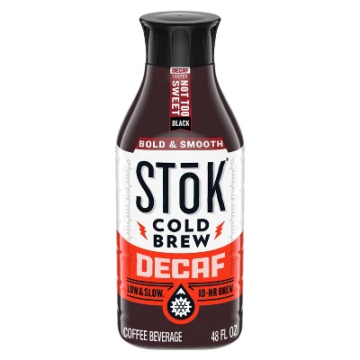 - DECAF COLD BREW: One 48 fl oz bottle of ready to drink Not Too Sweet, Black, SToK Decaf Cold Brew Coffee