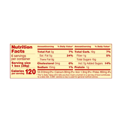 - 120 calories per serving (one box)