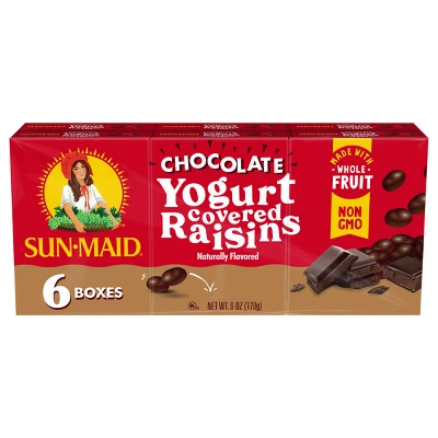 - Sun-dried California raisins wrapped in a creamy blanket of chocolate yogurt.