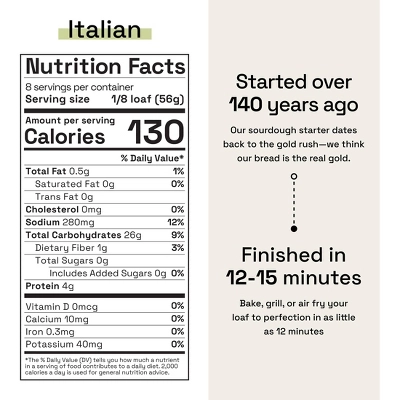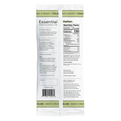This traditional Italian bread has a porous, chewy crumb with a soft crust and a dusting of flour. A great complement to a hearty meal or stew. Our essential fresh seal shelf-stable packaging provides our authentic artisan breads with locked in freshness for months, not days. No freezing or preservatives, so you can enjoy quality organic bread on demand!