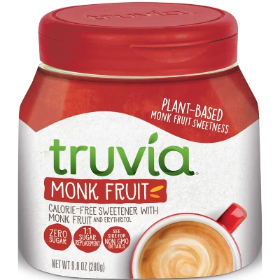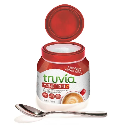 Erythritol is also found in fruits like grapes and pears. This gives you the sweet white crystals you love, without the sugar or calories. The Truvia® Calorie-Free Sweetener from the Stevia Leaf Value Bag has a new easy pour spout making it easier for you to sweeten. Whether you spoon it, pour it, or sprinkle it, this bag is a great value as it sweetens like 130+ packets.