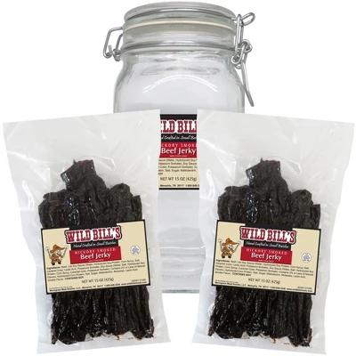 Wild Bill’s Original Hickory Smoked Beef Jerky Two-Bag Starter Kit (two 15oz Bags And 1 Jar)